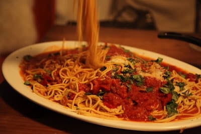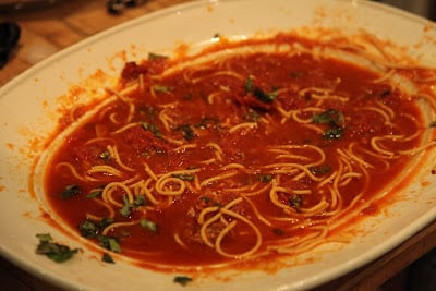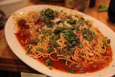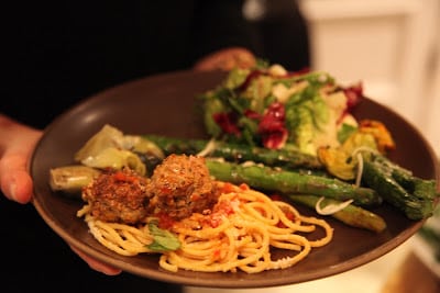 spaghetti & grass-fed meatballs with spicy tomato basil sauce