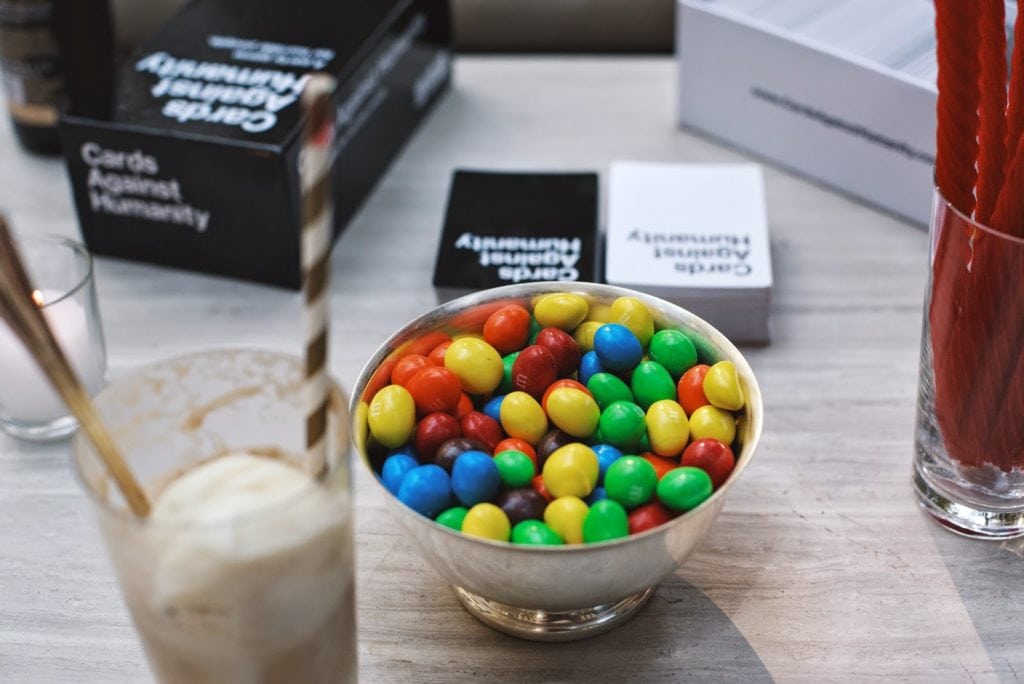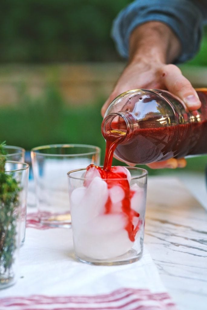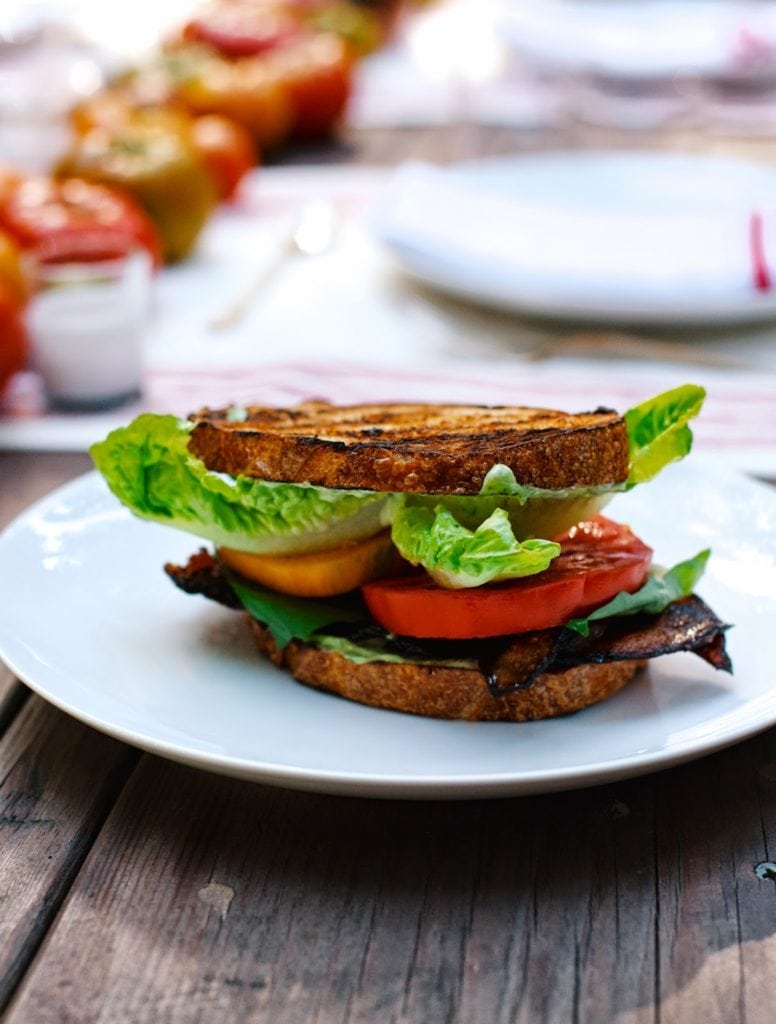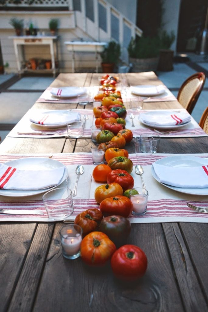 I love a game. If you’ve seen the movie Anniversary Party you are familiar with the type of person who has a tendency to get a little too intense during a game. A bit overly competitive. I may be that type of person. But I’m working on it (otherwise Greg would refuse to ever play with me!). So, I love games and I also love B.L.T.’s (a perfect food): hence, a B.L.T. & Games dinner party. My friend Jenni Kayne, who is doing an entertaining series featuring fellow entertainers, shot the dinner for her blog Rip Plus Tan; all of the recipe & details can be found there. It was a really simple night inspired by tomatoes and the guests (namely my friend Molly who is an enthusiast, like myself, and her enthusiasm for things like homemade pickles and vinegary drinks makes me happy to make them!). I love the shrub based cocktails at Baco Mercat and have been meaning to make them at home. It turns out that if one mixes blackberries with sugar, lets them macerate for a couple of days and adds vinegar, they have a very delicious base for a cocktail (recipe on Rip Plus Tan!). Cocktails led to a family style dinner which led to the main event: the game. On this particular night we played the latest crowd favorite Cards Against Humanity. While controversial to some, it is def designed as a social game, perfect for a dinner party. I was on my best behavior, if anything, it was Cass who owes everyone an apology. For dessert, I highly recommend a bourbon spiked root beer float (I’ve been enjoying them all week!). So as not to waste, guests took home the tomatoes from the centerpiece along with jars of homemade basil pesto in canvas farmers market totes. Goodbye Summer – I’m so, so ready for Fall.