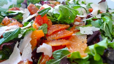 mixed greens with grapefruit and cava cava oranges