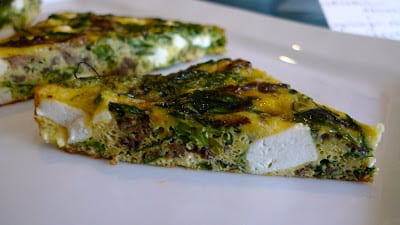 morel, pea shoots, ricotta frittata