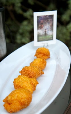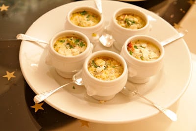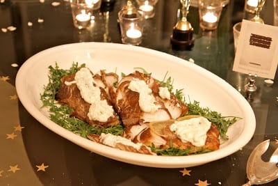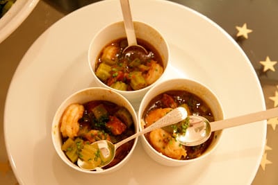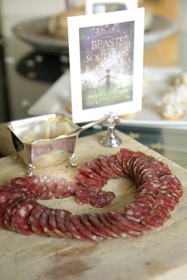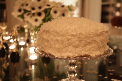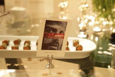 For my favorite menu of the year, there is a bit of a process.  First, there are the nominations and then the viewing of all of the films (thank you screeners!!).  The best part is the brainstorming: a course for each Best Picture nominee.  If nothing else, this party is pure bragging rights, a show-off moment for imaginative food.  However, this year, I cannot take all of the credit.  In fact, the two most creative courses were inspired by friends’ suggestions.  So thank you Van for suggesting something ‘aged’ for Amour (French cheeses, of course).  And Ahna inspired my very favorite: ‘north vs south’ for Lincoln; Greg made it a fair battle by picking ‘clam chowder vs shrimp gumbo’.  Amy’s film poster food cards brought each course together and make the night all the more festive.  Even though she impresses me with the decor every year, this got my vote for best (anemones are a new favorite).  Dessert is usually the highlight of this party: a little kid dessert bar for Toy Story 3 and last year’s black and white extravaganza for The Artist set the bar pretty high.  Lucky for me, Life of Pi was a sweet inspiration and Djagno Unchained screamed for a coconut white cake.