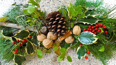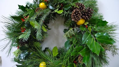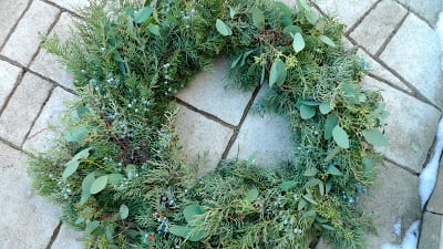 I didn’t realize what a Yule log technically was and now that I do, I think they make a very thoughtful Christmas gift. A Yule log serves as Christmas decor, usually placed on the mantle, and is burned on New Year’s Eve for a year of good luck. I decorated mine with greens, nuts, pine cones and cinnamon sticks: glue gun heaven. For friends without fireplaces, I made wreaths. Since my crazy mom owns a wreath making table, I made my wreaths with Oregon greens. But, if you don’t have such a mother with a forest full of cedar, juniper, pine, fir and holly, buy simple wreaths and personalize them with your favorite embellishments–clementines, meyer lemons, persimmons, flowers, ribbons, moss, twigs, spray paint–by wiring in or glue gunning. Mine makes me happy every time I open my front door.