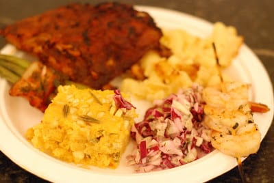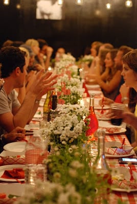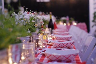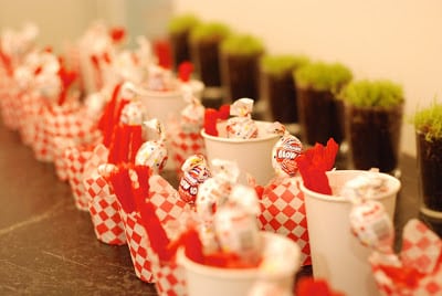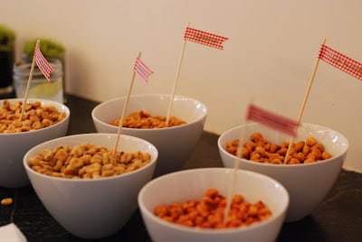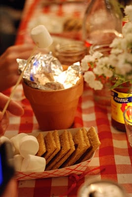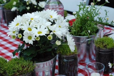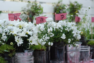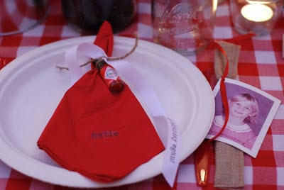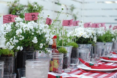 Is it really the end of August? Where did the summer go? For me, it was spent making parties. So many that I forgot to blog about them! Now it’s catch up time and this gingham-heavy birthday party was one of my favorites. Our creative friend Shepherd wanted to throw his wife a surprise party with the following inspirations: gingham, picnic, Alabama, and catching fireflies in jars. We went nuts. Amy, who is historically afraid to dabble in color, reluctantly embraced all things red & white–with amazing results. She planted daisies in galvanized bins and mason jars, tied mini tabasco bottles to place cards and made use of a picture of the birthday girl in a grade school photo wearing gingham (how lucky is that?). This table really does scream fun and instantly put guests in a cheerful mood. We started with cocktails and appetizers inside where Amy and I may have eaten more corn nuts than the rest of the guests combined. My friend Deirdre, who lives in the South, swears by pimiento cheese, so it made its way onto cucumber rounds with a green olive garnish. Outside, the menu was classic bbq comfort foods. Many people have asked me for recipes (which I rarely use and need to learn how to write) so I’ve linked to two of my favorites below: the espresso baby back ribs and Martha Stewart’s mac and cheese. Both are heavenly. This post reminds me where the summer went: eating good food, in pretty places with good people.