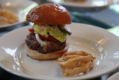 beef bacon cheeseburgers on brioche buns with thousand island dressing