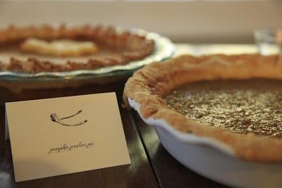 Greg and I hosted our first Thanksgiving this year and I couldn’t have had more fun doing it. Our menu planning revolved around how we were going to cook the turkeys: all three of them. The decision was to roast one ala Canal House, after a three day dry brine, with lots and lots of sage butter. The other two were divided into legs and breasts; Greg smoked the breasts and I made turkey confit with the legs (following Suzanne Goin’s recipe from Bon Appetit). I loved all three. Amy set a gorgeous table and printed invitations, menus & place cards with a wish-bone motif (not to mention, acted like a total show-off with her magazine-worthy fancy pies). While I played with new ways to make the bird, I stuck with three of my favorite Thanksgiving traditions from growing up. I look forward to going around the table and saying what we are grateful for, as well as my great grandmother’s pumpkin praline pie. But my biggest thanks and gratitude goes to all of my friends who indulged me with a serious game of Celebrity, followed by the late night crew’s round of Apples to Apples. More than football, my family was all about the board games and I’m lucky to have good friends who are also game to play along. Hope you all had Happy Thanksgivings as well…looking forward to keeping it rolling throughout the Holiday Season!!