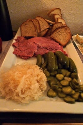 pastrami, sauerkraut, pickles, mustard, rye