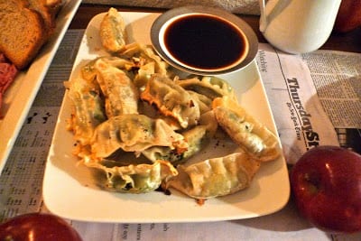 vegetarian dumplings with soy dipping sauce