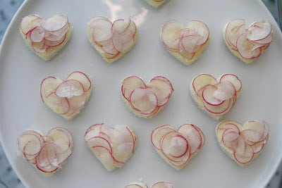 For what other occasion could I make such a girly Valentine’s Day meal, than for a ladies luncheon? It was fun to flip through all of Martha Stewart’s books and February issues of Living for inspiration, and then to do my own takes on pink and heart shaped food. The salad of artichoke hearts, hearts of palm, heart shaped beets & croutons with a pink peppercorn champagne vinaigrette was especially fun to prepare (maybe tied with the crudites!). And, of course, the whole meal was even better served at Amy’s pretty table, a white take on Valentine’s Day with cut out hearts and classic roses. Hope that everyone had a sweet Valentine’s day; if Instagram is any indication, it looked like a good one! xoxo