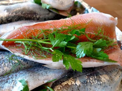 grilled rainbow trout with parsley and lemon