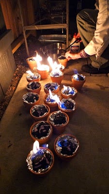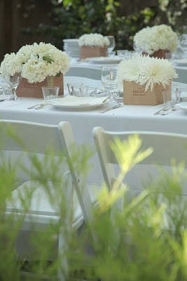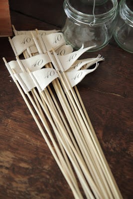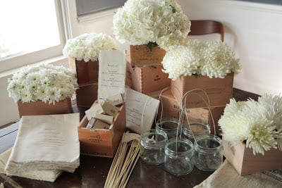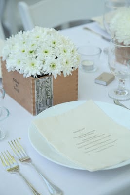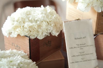 A classic, manly, red meat and martini vibe felt like the right backdrop for our friend Richard’s 40th birthday party. For the cigar aficionado, Amy customized match books and made all of her arrangements in an array of wooden cigar boxes. Keeping in theme, we did a martini bar, all shaken, not stirred (I’m suddenly a big fan of ‘signature names’ for ‘signature cocktails’). I went traditional steak house with the menu, loving an excuse to serve iceberg wedges with buttermilk blue cheese dressing. And, instead of bananas foster or cherries jubilee, we did our own version of a theatrical dessert: individual tabletop roasted s’mores. We simply lined terra cotta pots with tin foil and filled them with hot charcoals. Seeing as how s’mores are my all-time favorite dessert, I’d call this a home run. And while I considered using fancy chocolate and homemade marshmallows, some things are best left in their original form, as a classic is a classic for good reason.
