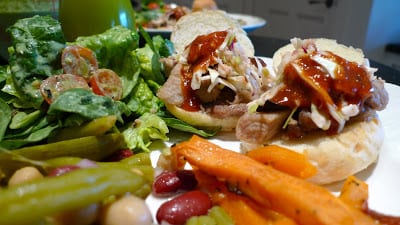 pulled pork sliders with pickled coleslaw and spicy bbq