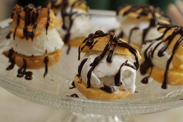 profiteroles with espresso chocolate sauce