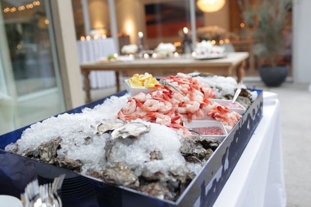raw bar with oysters on the half shell & mignonette