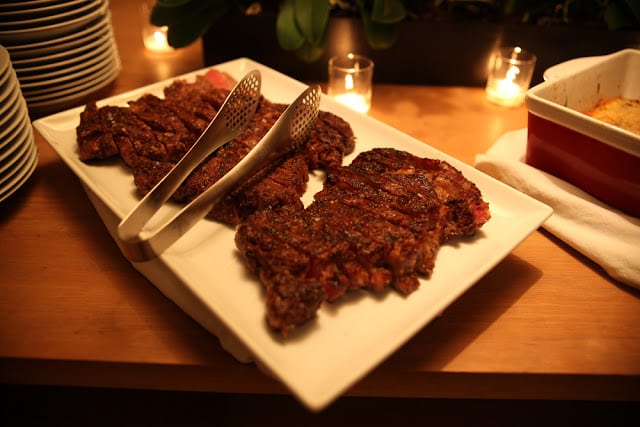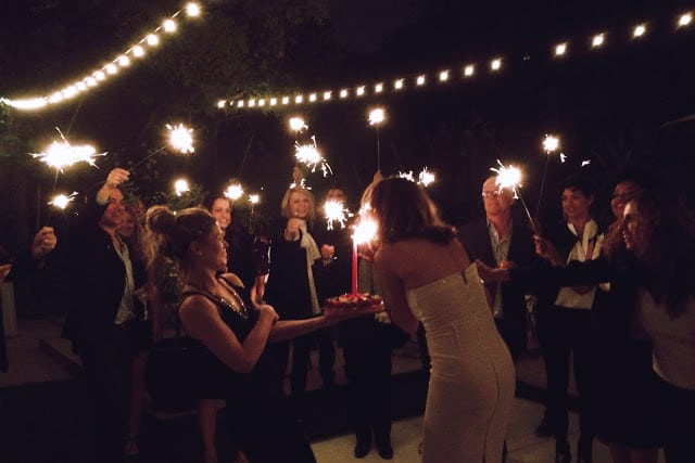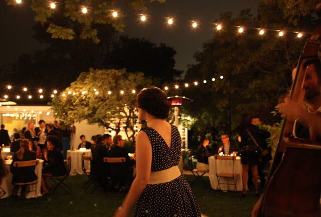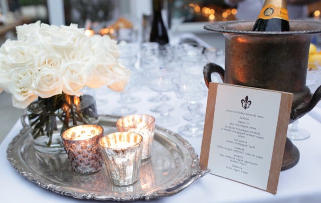 The invitation said “Champagne & Onion Rings, Oysters & Absinthe”. This party was off to a good start! And though one needs little more for sustenance, we took the Parisian bistro theme and ran with it. Getting the French jazz band Avalon to perform set the perfect tone for this backyard fete. While they charmingly sang and played, guest enjoyed plenty of champagne cocktails, sazeracs and mini croque monsieurs. For dinner, we kept it totally simple and classic–e.g. steak au poivre and frisee with lardons & egg–with more ever-present champagne (and onion rings, of course!). Bistro lights over small cafe tables made the whole night feel cozy and Amy’s use of garden roses throughout the party was stunning and chic. I’m longing for a trip to Paris and this party with a glimmer of my associations: Hemingway’s obsession oysters, my favorite restaurant’s profiteroles and a semester abroad filled with boozy love and fun. Bon Anniversaire Ryan!! xx