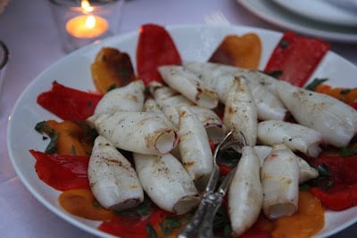 roast peppers, grilled squid & sherry