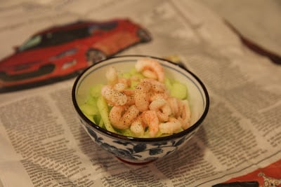 sweet & sour cucumber slaw with bay shrimp