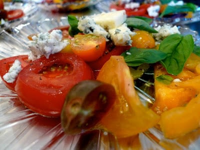 heirloom tomatoes with sweet and purple basil, and crater lake blue cheese