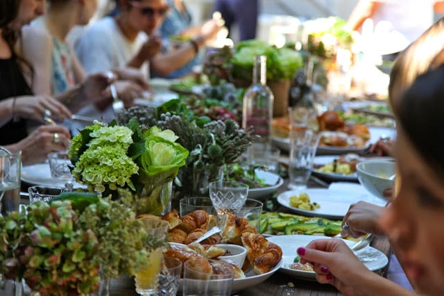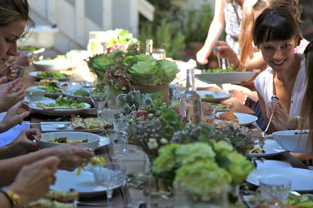 This party makes me happy. Throwing a birthday brunch for my dear friend Ahna truly reminded me what entertaining at home is all about. First, it’s about an occasion. This was a chance to bring a great group of girls together to celebrate our amazing friend. I focused on a few thoughtful touches to celebrate the guest of honor. Because Ahna has turned us all on to incredible astrologers and healers, this was our chance to give back. A few ladies pitched in to hire a tarot card reader to do readings for all of the guests throughout the party–super fun (not to mention a great conversation piece!). And what a perfect opportunity to serve a few of her favorites: crepes complete, French pastries, and chocolate (all made in advance!!). Because I kept the menu simple, I had time to play with flowers, which was enjoyable (rather than stressful!), as I wasn’t trying to get a million things done. The control freak in me let go and accepted help from good friends who brought the almond croissants (thanks Court!), helped set the table (thanks Jen!), and even assembled the hors d’oeuvres (Julianna you’re the best!!). Because I was relaxed, I felt present and really enjoyed myself amongst friends. As did the rest of the girls. It’s not about fuss or getting it all right, it’s about bringing people together. Thanks Ahna for being a wonderful and inspiring reason to throw a fete.