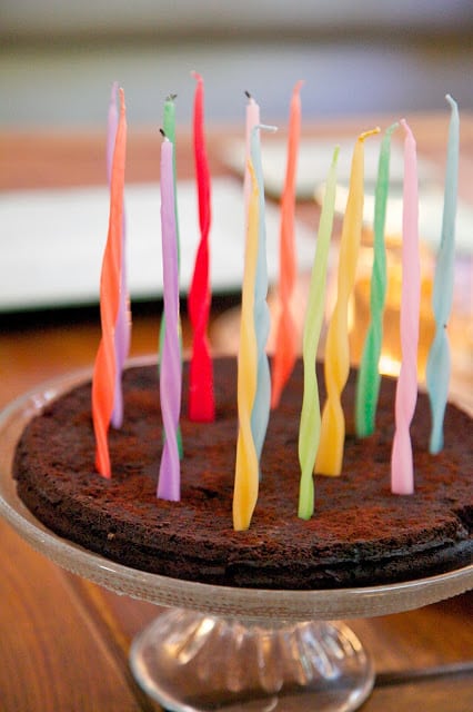 flourless chocolate birthday cake with whipped cream