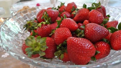 spring strawberries with creme fraiche and brown sugar